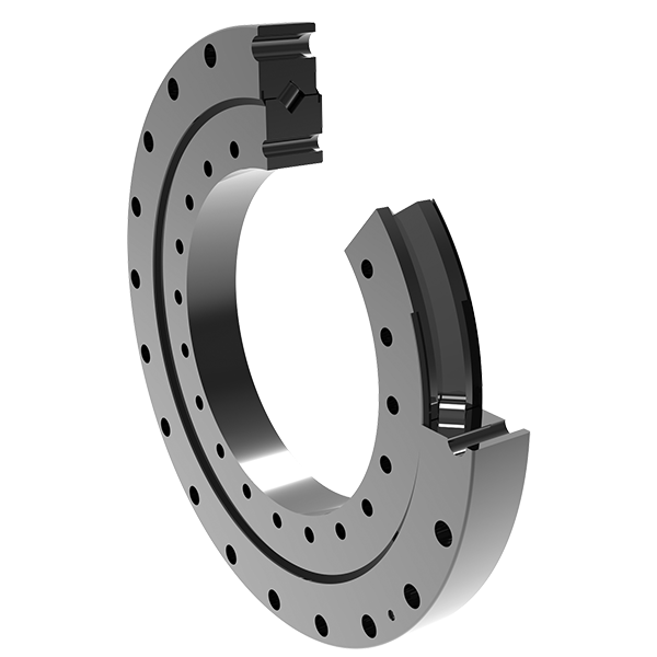 交叉圆柱滚子轴承由外圈、内圈、圆柱滚子和隔离块组成。圆柱滚子是在V型滚道间交叉排列,一套轴承就可以承受两个方向的轴向力、径向力、倾覆力矩和其它联合载荷。并可通过调整内部尺寸,使轴承出厂时具有预负载特性。使机构设计更加简单化。安装和调整更加便捷。交叉圆柱滚子轴承有外圈分离型、内圈分离型、内圈和外圈整体型、具有安装法兰孔型等几种类型,适用于各种需要高精度、高刚性的场合应用。